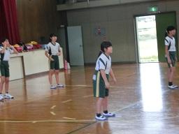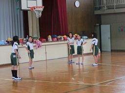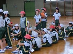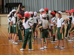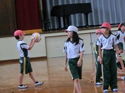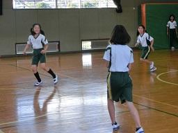学年ごとに5人のチームを組んで攻撃と守りの練習をしました。