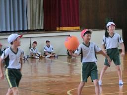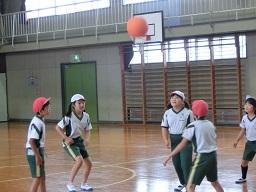 これは月曜日の2時間目、3年生と4年生の体育の時間です。ニュースポーツ「プレルボール」の時間でした。