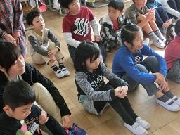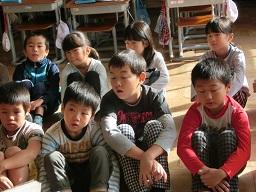 最初は子供たちの作文発表です。代表の子供たちが前に出て着席しました。