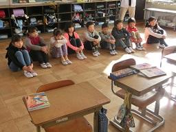 集中すると学習する力がつきます。2年生は「やさしいおおかみ」という本を読んでもらっていました。