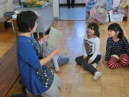 何をやっているのかな、と見ると、先生がカードを持って、子供たちがそれに答えています。