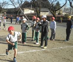最後の高学年の6年生も校庭を回ってきました。1年生と2年生が半袖半ズボン姿になって集まって来ました。