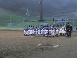 アンパイアーの「ゲーム!」の宣言です。応援席にお礼を言います。