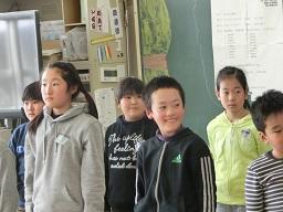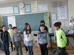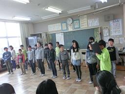4年生に戻ってみました。授業の最後の部分でした。合唱をしました。「ビリ-ブ」です。