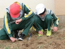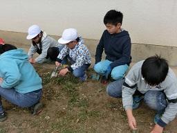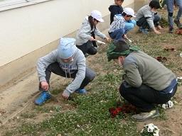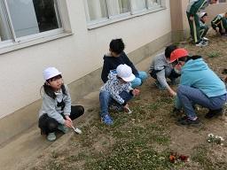 環境委員会の子供たちが花壇の除草をしました。