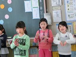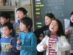 3月に入ってから、朝の時間はどの学年も卒業式の呼びかけの言葉の練習を始めています。上の青い