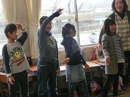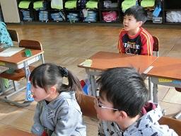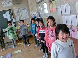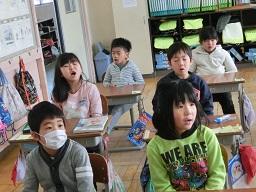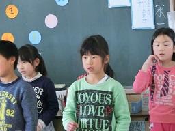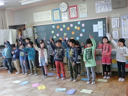 5年生の演奏の様子は多くの保護者のカメラに収まったようです。今度は1年生の教室に戻りました。
