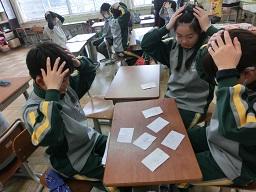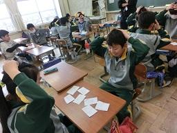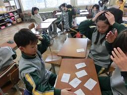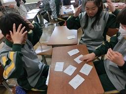 それを2人または3人でカルタ取りのように取ります。読み上げは先生です。お手つきは減点になるようです。