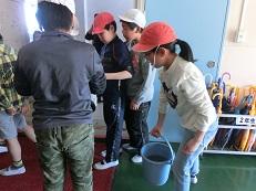 バケツの水も片付けます。6年生が雑巾をきれいにゆすいでくれました。