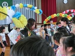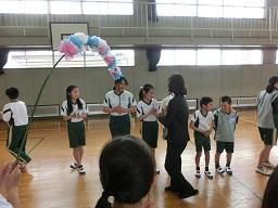 音楽が流れると子供たちが歌い出します。卒業式でも歌った「旅立ちの日に」です。
