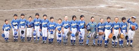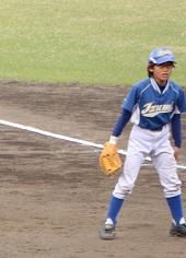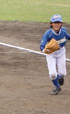 4番MR君が打った打球はレフトフライ。3塁ランナーのKR君はこれを見て、タッチアップ。2点目のホームを踏んで、ベンチのTK君とタッチです。結局泉クラブは2点を取りました、その裏守りにつきました。3塁のOR君と、ショートを守るKR君です。ランナーは満塁です。