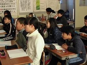 今日の1時間目に6年生が青い目の人形の勉強をしました。社会の勉強です。最初に15分ほど紙芝居を読みました。