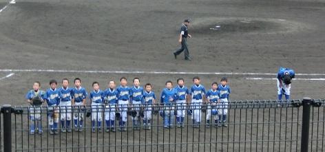 1回戦の試合の見所はいくつかありました。まず1回にキャッチャーのWK君が1塁方向へのファールフライに飛びついたことです。なかなかできないプレーで、感動を呼びました。これでみんなの守備が締まりました。WK君は4回には難しいキャッチャーフライをアウトにしました。また、レフトのWH君は難しい正面のライナーを見事にキャッチしました。すばらしいプレーでした。そしてセンターHK君は左中間に飛んだライナー性の当たりを走りついて捕球しました。これも大きなプレーでした。