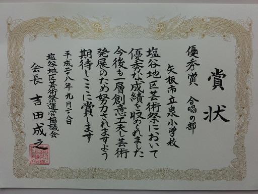 今日、合唱部の塩谷地区音楽祭コンクールでの優秀賞の賞状ができがりました。明日、終業式の時に表彰する予定です。