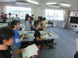 今日は中学校の音楽の先生の授業です。先生はMath計算です。ピアノを弾きながら指導をしています。