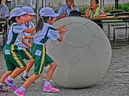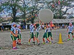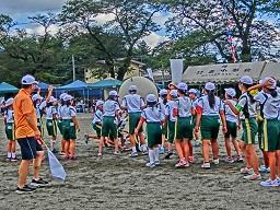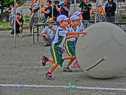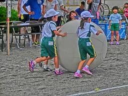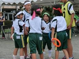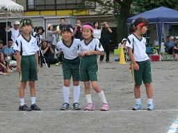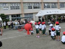 次は紅白リレー下学年の様子をお伝えします。スタートの1年生女子がじゃんけんをしています。2年生は3走になります。すでに準備に入っています。