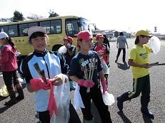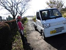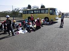トラックが来ました。このトラックにマリーゴールドを乗せます。バスの駐車場に再度集まります。