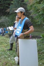 ミヤコタナゴの生態についてフリップを見ながら話を聞きました。