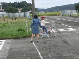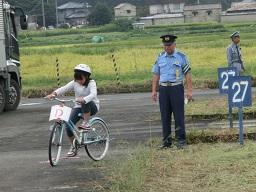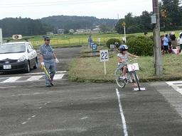 2回目の練習の子です。次の写真はD班の別の子のスタートです。ここでは泉小の交通指導員さんが立っていますね。