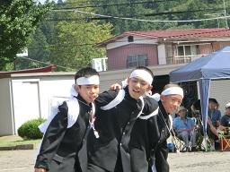 白組の応援は佳境に入りました。応援歌を歌うときは、応援団員は肩を組んでいます。