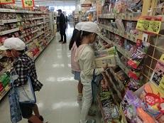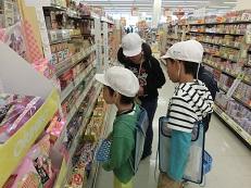 お家の人に頼まれた物を買う子、自分の好きな物を買う子、考えながらかごを持っていますね。