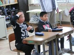 この後出題者は担任の先生に替わりました。最初は手は頭の上に置きます。