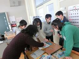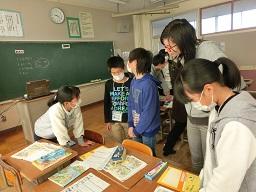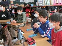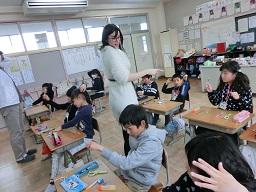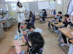子供たちはALTの先生の言うことを聞いて、英語で言われた物を机の上に出しました。