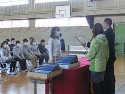 今日の昼休みの後に卒業式の呼びかけ全体練習をしました。
