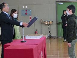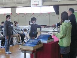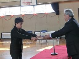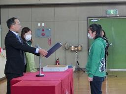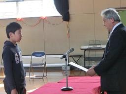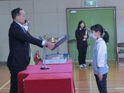 毎日の努力が認められました。教育長さんから賞状をいただく時、とても緊張していたようでした。