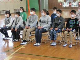 6年生の入場が続きます。着席して少し緊張気味の6年生です。