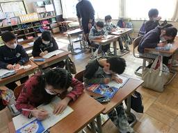 今日は3月10日(金)です。この写真は今朝の読み聞かせの6年生の教室の様子です。