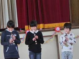 3年生の出し物です。リコーダーで演奏しているのは「レッツゴーソーレー」という曲です。