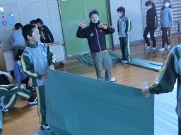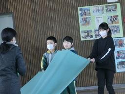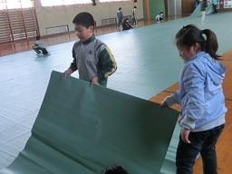 5時間目は5年生と先生でシート敷きをしました。きれいに敷くのはこつがあります。5年生はこれが