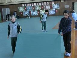 シート敷きは、毎年5年生は卒業式の準備の時から、6年生のかわりに行います。