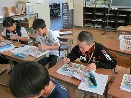ALTの先生と中学校の英語の先生が来てくれました。今日の勉強は単語の勉強です。教科書の中の単語を探します。
