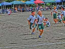 中学生のパン食い競走です。女子の次に来たのは陸上部男子です。