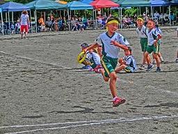 次は泉中学校の生徒たちによるパン食い競走です。中学生は今年も部活動ごとにユニフォーム姿で走りました。