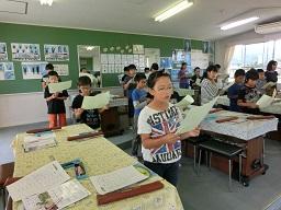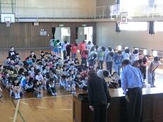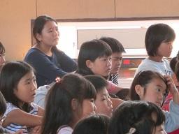 発表を聴く子供たちです。手前は5年生です。こちらは最前列の子供たちです。