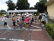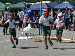 今度はプログラム№5 「ランニングマン」です。上学年の障害走です。