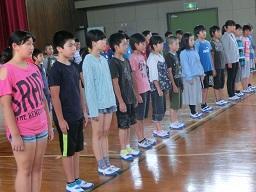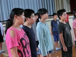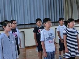 あいさつは6年生のOH君でした。6年生と5年生の児童による合唱が始まりました。