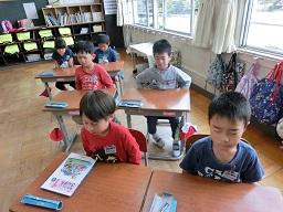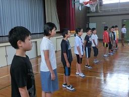 今日の2時間目に1年生の算数の勉強がありました。この写真は授業開始の立腰です。