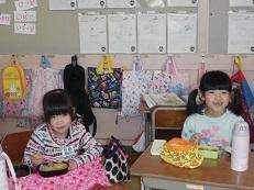 年に数回お弁当の日がありますが、本校では12月22日のお弁当の日は、なかよし会食を行いました。