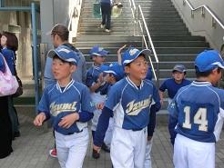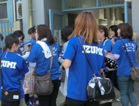 整列をしている泉クラブ。「○○君、ここだよ。」