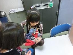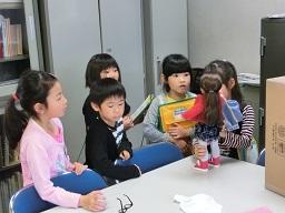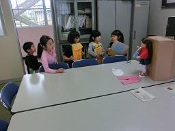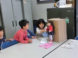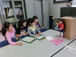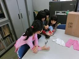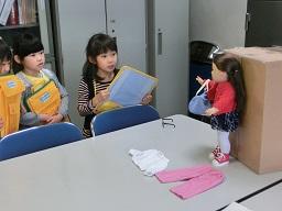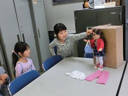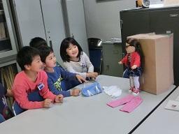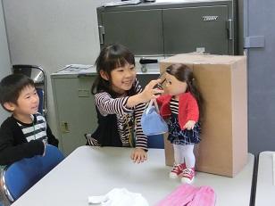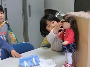 2年生が人形にめがねをかけさせています。スージーはめがねも持ってきました。「へえ、変ったよ。」