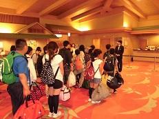 ホテルに着きました。大きな荷物をもってロビーに集合です。