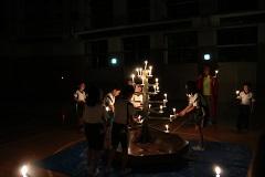 今度はキャンドルファイヤーになります。キャンドルに点火していますね。