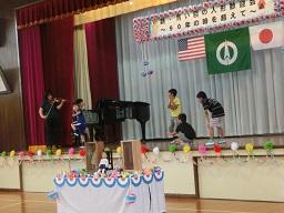 一番向こうを見ると、食事がかりの子がいます。「手を合わせてください。ごちそうさまでした。」
