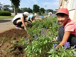 運動会の練習も始まりました。校庭もきれいになったので、花壇もきれいにしようと、朝の比較的涼しい時間に計画しました。