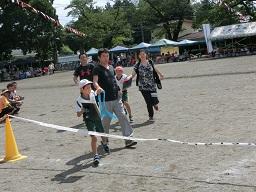 これには「黄色いはちまき」と書いてあります。お父さんを引っ張ってゴールする子ですね。