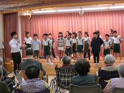 担任の先生もおれいの言葉を話しています。最後は職員やお年寄りの方々に拍手をいただきました。恥ずかしいけど嬉しかったです。